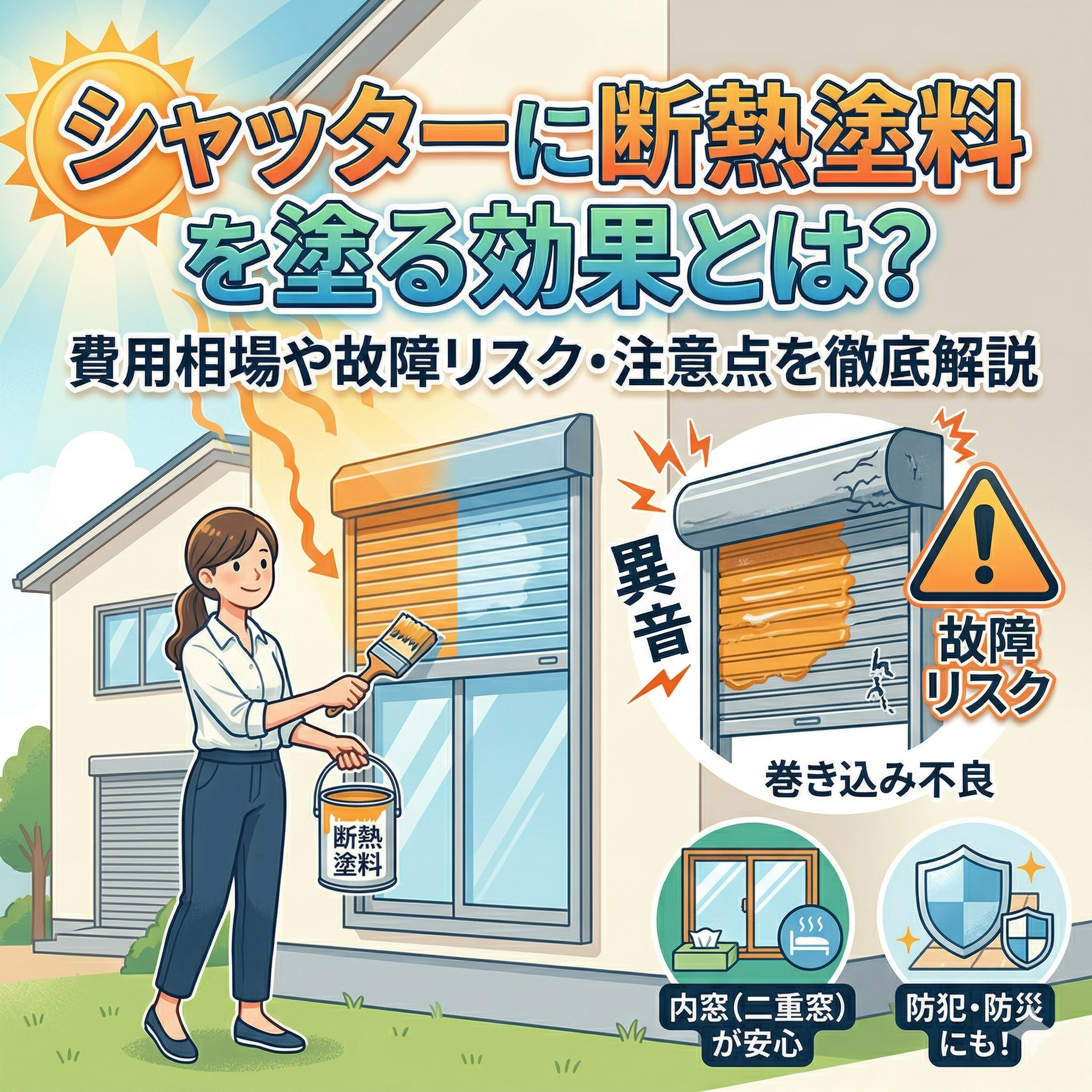新築戸建ての窓に設置された標準仕様の金属製シャッター。「夏場は直射日光で熱を持ちやすく、室温上昇やエアコン効率の低下が心配…」とお悩みではないでしょうか。 対策としてシャッターへの「断熱塗料」の施工を検討される方は多いで […]