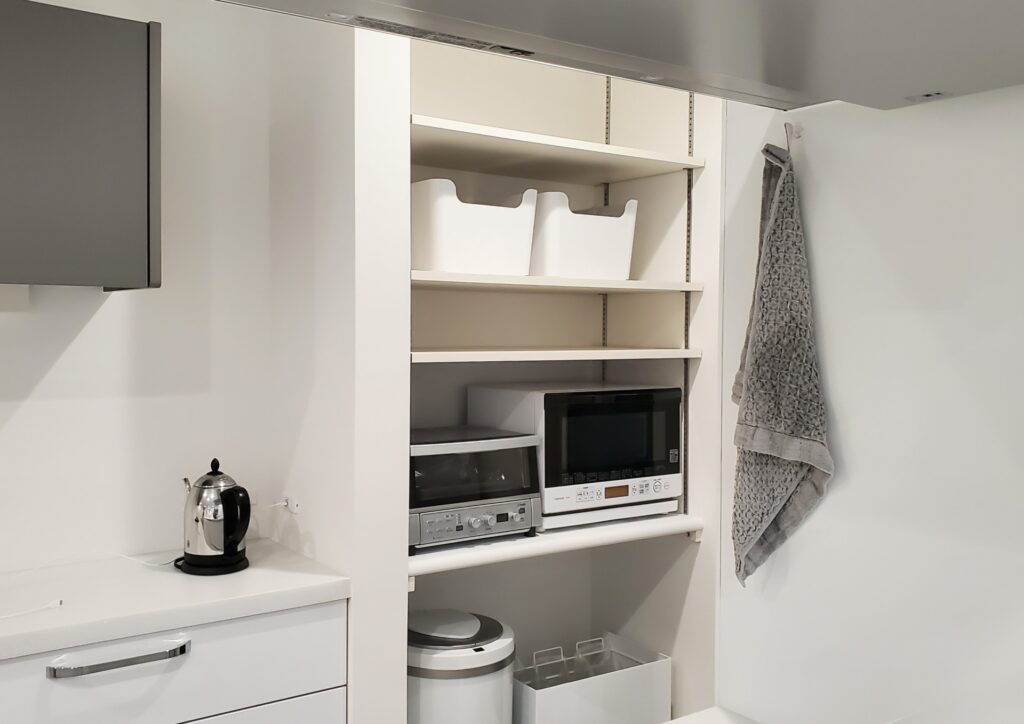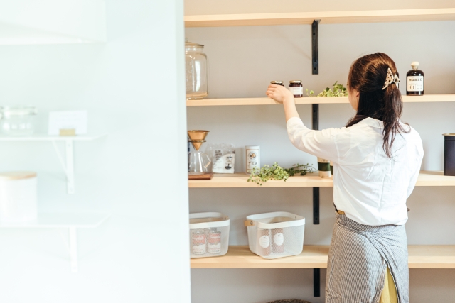 キッチン用品や食品のストック場所が足りない場合は、フリースペースやフリールームがあれば、可動棚でパントリーや整理棚にすることも可能です。