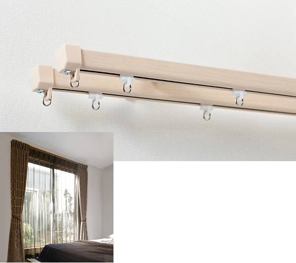 その名の通り装飾=インテリアデザインを重視したデザインレールです。 レール自体にインテリアとしての存在感を出し、カーテンとともに「見せるスタイル」のものが多くなっています。 機能性が高いものも増えてきており、素材も木材から様々なものがあります。