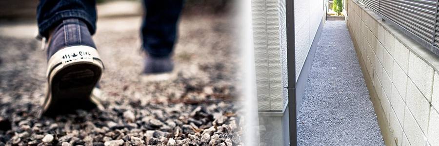 砂利は、比較的簡単に、かつ安価に取り入れられる上に、泥棒や侵入者への効果が大きいため、一戸建ての防犯対策として導入が増加しています。