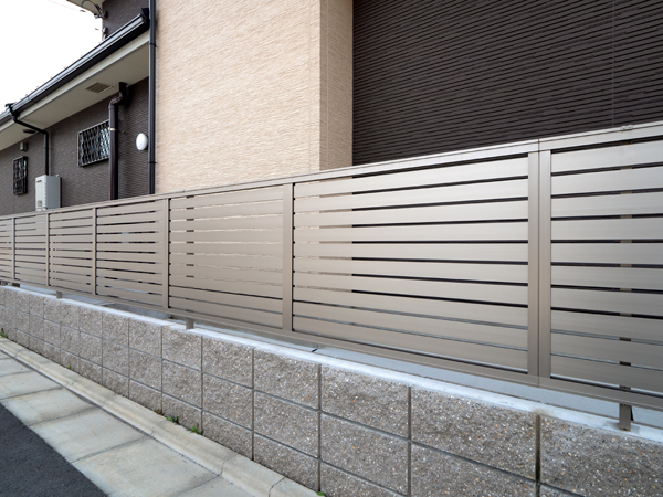 フェンスには目隠しタイプ、採風タイプ、採光タイプなど多くのバリエーションがあります。 人目を遮りながら風通しも確保できる、ルーバータイプの形材フェンスも人気です。