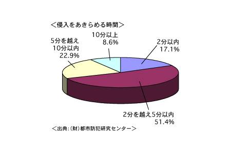 実は空き巣は侵入にかける時間は5分以内が一番多く、5分以上時間がかかると「その家への侵入をあきらめる」