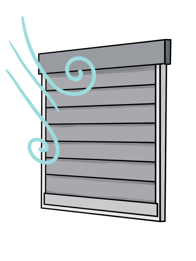 窓ガラスと外界の間にシャッターを入れ二重にすることで騒音は減少。