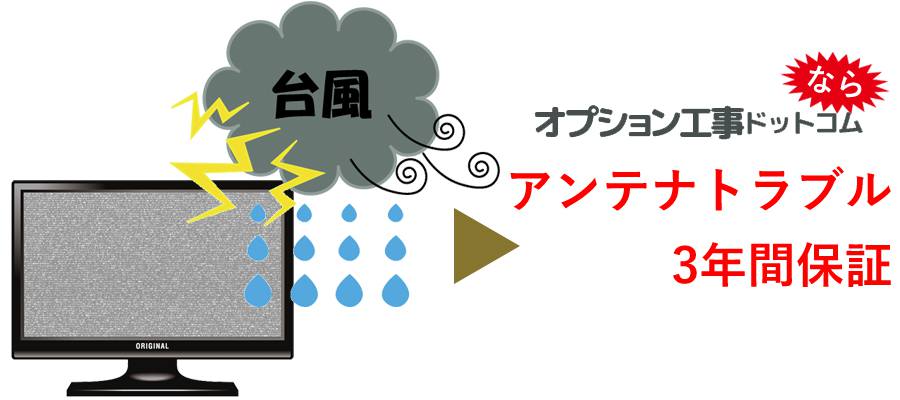 オプション工事ドットコムなら、安心の、アンテナトラブル3年間保証!