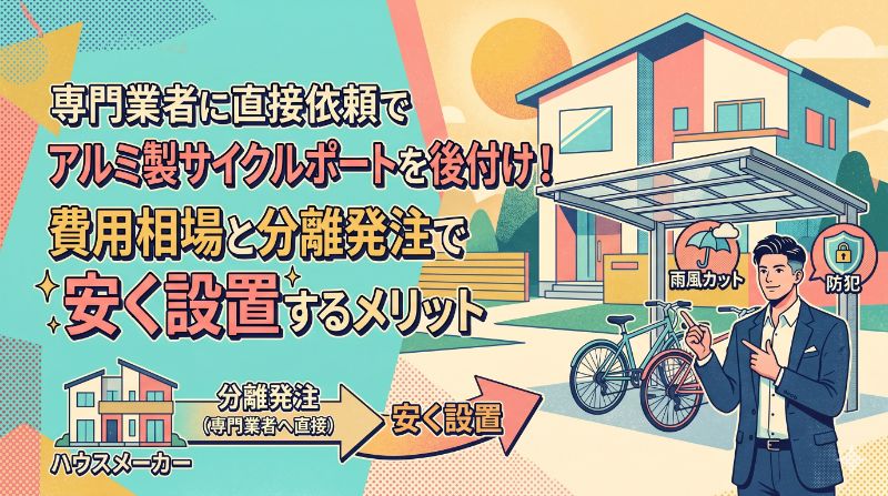 新築戸建てを購入し、入居後に「やっぱり自転車置き場に屋根が欲しい」と考える方は非常に多くいらっしゃいます。結論から申し上げますと、耐久性が高くサビにくい「アルミ製サイクルポート」を後付けする場合、ハウスメーカーのオプションとして頼むのではなく、専門業者へ直接依頼する「分離発注」を選ぶことで、品質を落とさずに費用を大幅に抑えることが可能です。