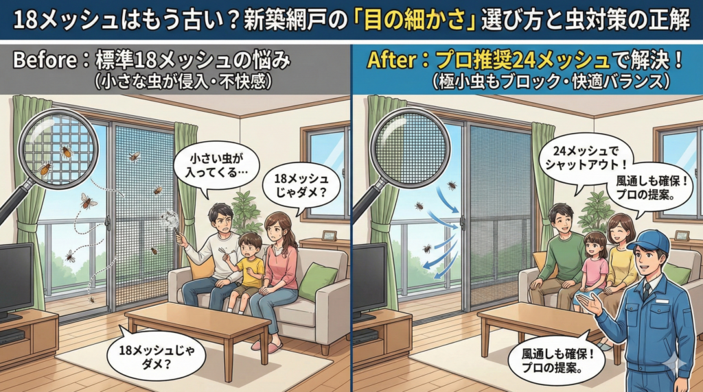 18メッシュはもう古い?新築網戸の「目の細かさ」選び方と虫対策の正解