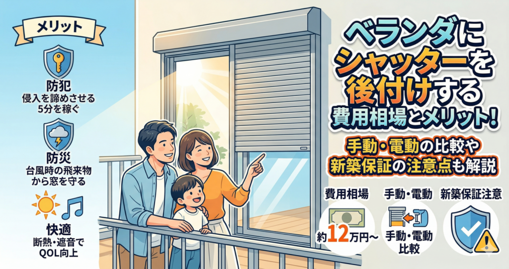 ベランダにシャッターを後付けする費用相場とメリット!手動・電動の比較や新築保証の注意点も解説