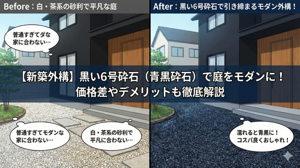 6号砕石は「標準的な砂利」の価格帯であり、高価な化粧砂利に比べて圧倒的にリーズナブルです。コストを抑えてモダンに見せる「賢い選択」と言えます。