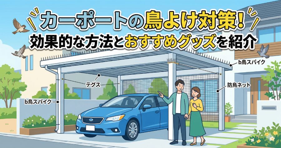 鳥のフン被害を防ぐためには、カーポートの構造に合わせたテグスや剣山の設置など、適切な物理的対策が必要です。これからカーポートの設置を検討される方は、鳥が止まりにくい形状のモデル選びや、設置場所の工夫も重要になります。