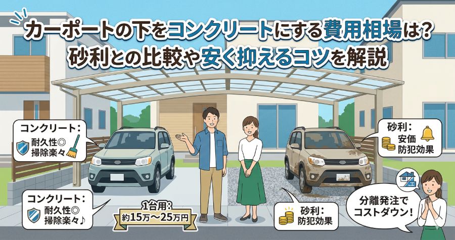 この記事では、カーポート下をコンクリートにする際の費用相場や、砂利と比較したメリット・デメリット、施工時の注意点について分かりやすく解説します。