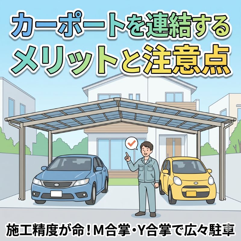 本記事では、M合掌やY合掌といった連結タイプの選び方から、施工上の注意点、費用相場までをプロの視点で分かりやすく解説します。ご自宅の敷地に最適なカーポート選びの参考にしてください。