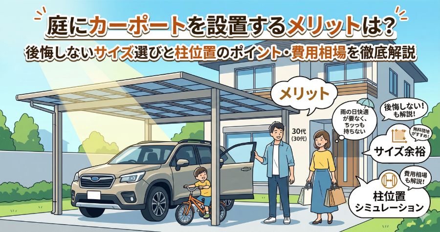 庭にカーポートを設置するメリットは?後悔しないサイズ選びと柱位置のポイント・費用相場を徹底解説
