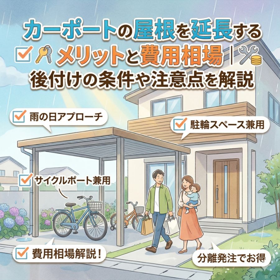 カーポートの屋根を後付けで延長できる条件と具体的な工法
