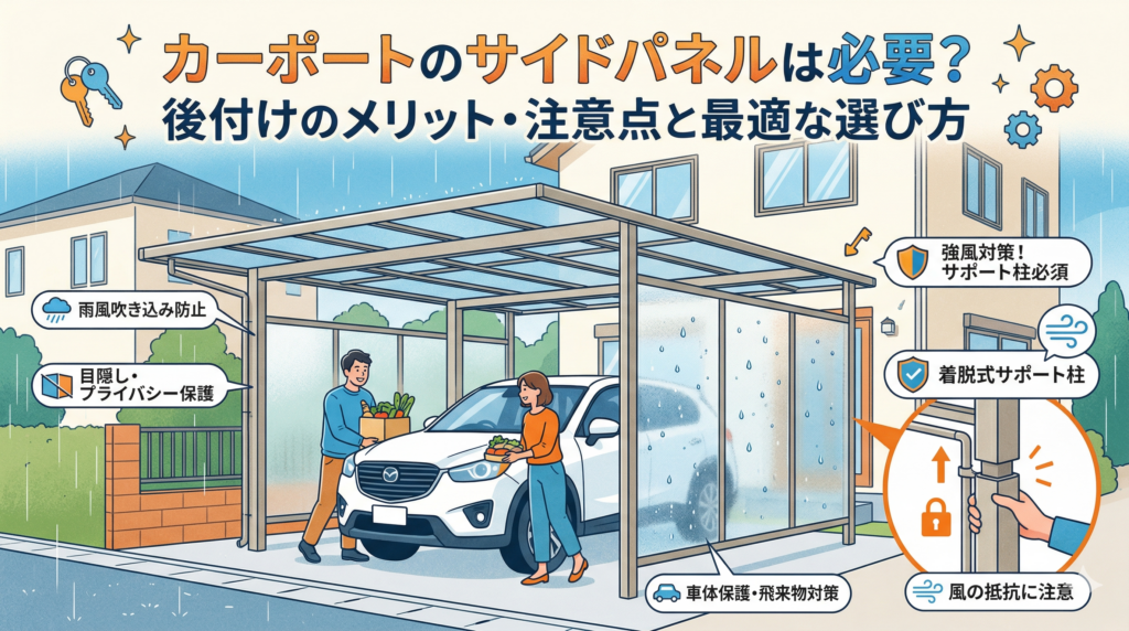カーポートのサイドパネルは必要?後付けのメリット・注意点と最適な選び方