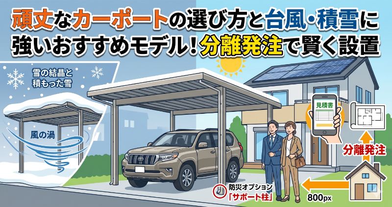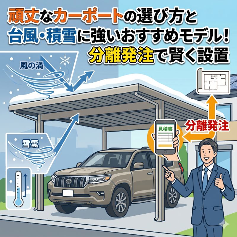 本記事では、強風や雪の重みに耐えられるカーポートの選び方から、費用を抑えて賢く設置するコツまで、プロの視点で分かりやすく解説します。