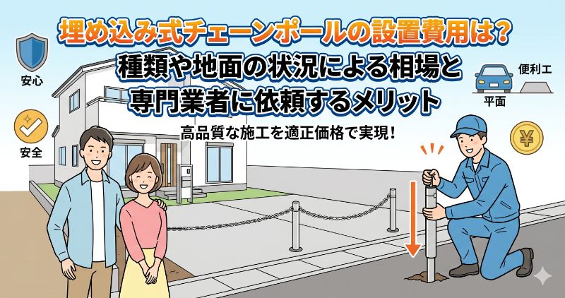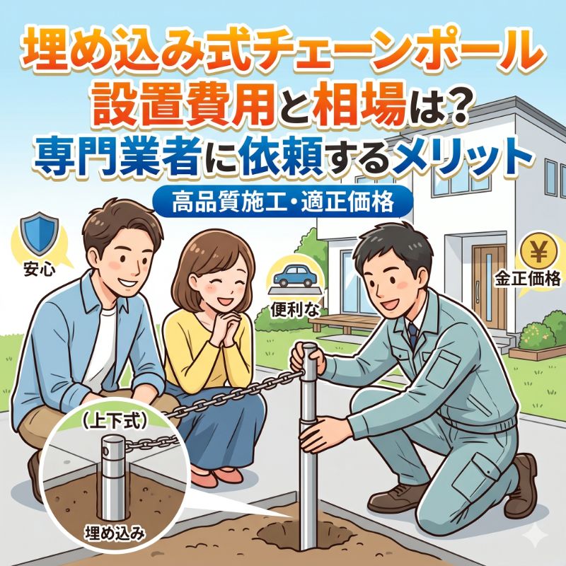 駐車場の車両盗難や無断侵入を防ぐために、チェーンポールの設置を検討されている新築戸建てオーナー様へ。この記事では、ポールの種類や地面の状況による費用相場の違い、そしてハウスメーカーと専門業者の価格差について分かりやすく解説します。
