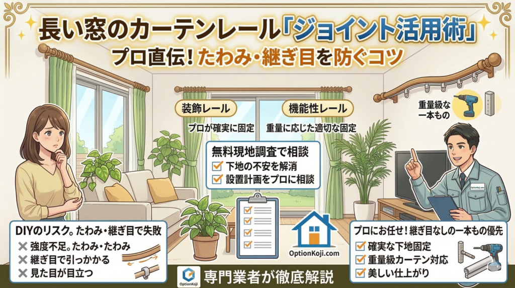 【プロが解説】カーテンレールのジョイントはどう使う?長い窓への設置でたわみ・継ぎ目を防ぐコツ