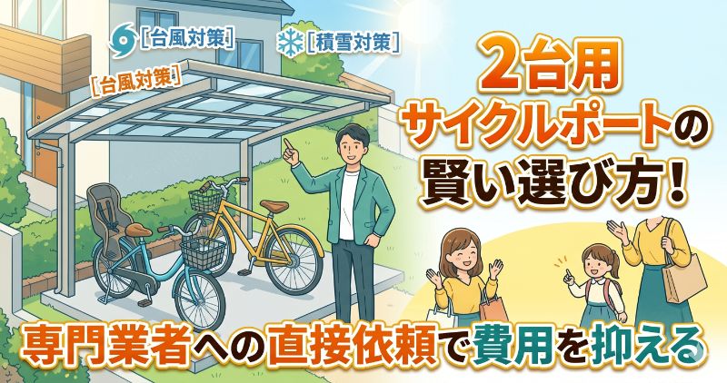 2台用サイクルポートの選び方と価格相場!ハウスメーカーと専門業者の費用比較&台風・積雪対策