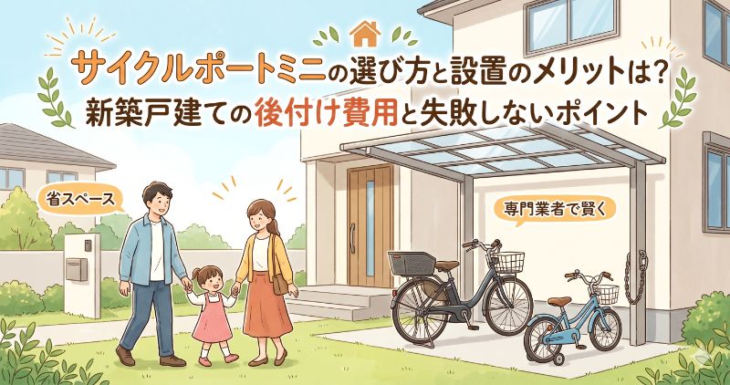 新築戸建てでの生活が始まると、意外と困るのが自転車の置き場所です。雨ざらしになればサビや汚れの原因になり、防犯面でも不安が残ります。そこでおすすめなのが、カーポートよりも省スペースで導入しやすい「サイクルポートミニ」の後付けです。ハウスメーカーの純正オプションではなく、オプション工事専門業者に分離発注することで、費用を適正に抑えながら、お住まいの外観や敷地にぴったりの駐輪スペースを実現できます。