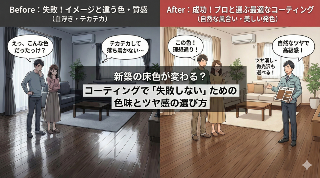 新築の床色が変わる?コーティングで「失敗しない」ための色味とツヤ感の選び方