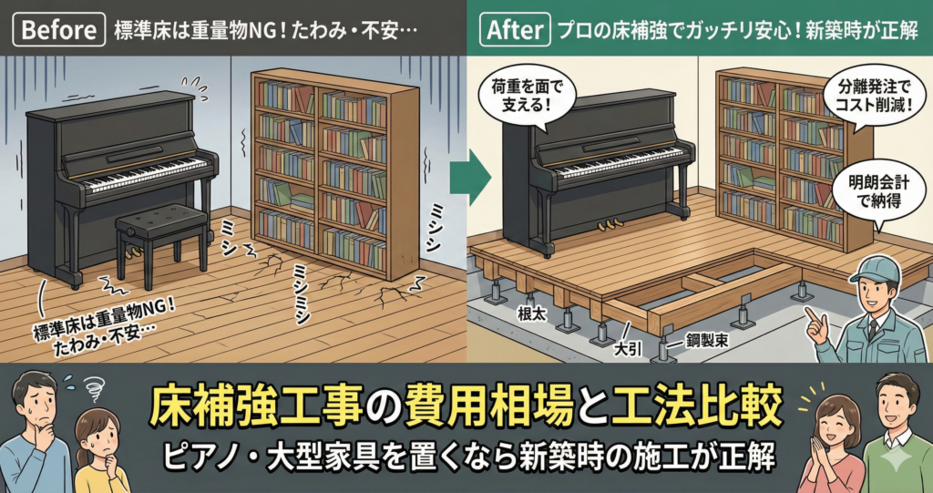 床補強工事の費用相場と工法比較|ピアノ・大型家具を置くなら新築時の施工が正解
