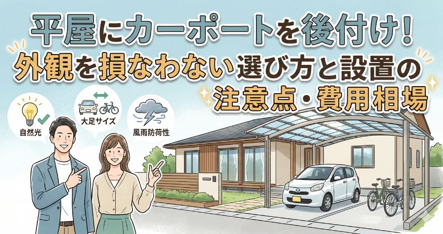 平屋にカーポートを後付け!外観を損なわない選び方と設置の注意点・費用相場