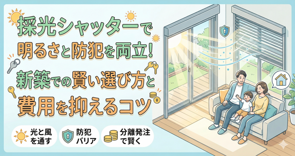 結論からお伝えすると、ブラインドのように光や風を取り込める「採光・採風シャッター」を選べば、明るく快適な室内と高い防犯性を両立できます。ただし、高機能なシャッターをハウスメーカーのオプションで依頼すると、予算を大きくオーバーしがちです。費用と品質のバランスを重視するなら、メーカー純正品を適正価格で施工できる「オプション工事専門業者への分離発注」が最も賢い選択と言えます。