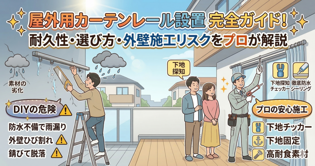 この記事では、屋外設置に耐えうるカーテンレールの選び方や、新築の大切な外壁(サイディング)を守りつつ強固に取り付けるための専門的な施工ポイント、そして費用相場の目安について解説します。