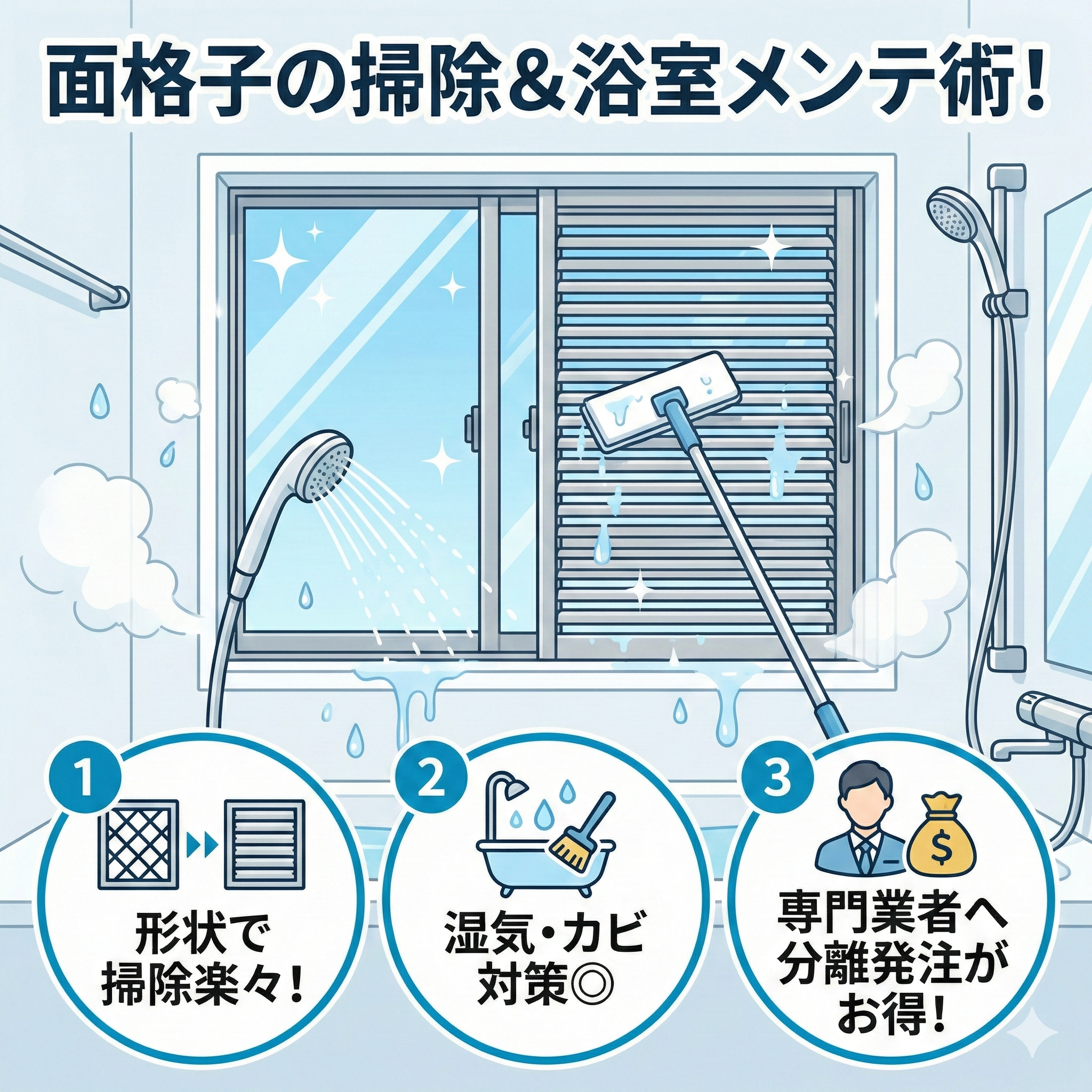 面格子面格子の掃除は面倒?浴室のカビ対策や裏側のメンテナンス方法を解説