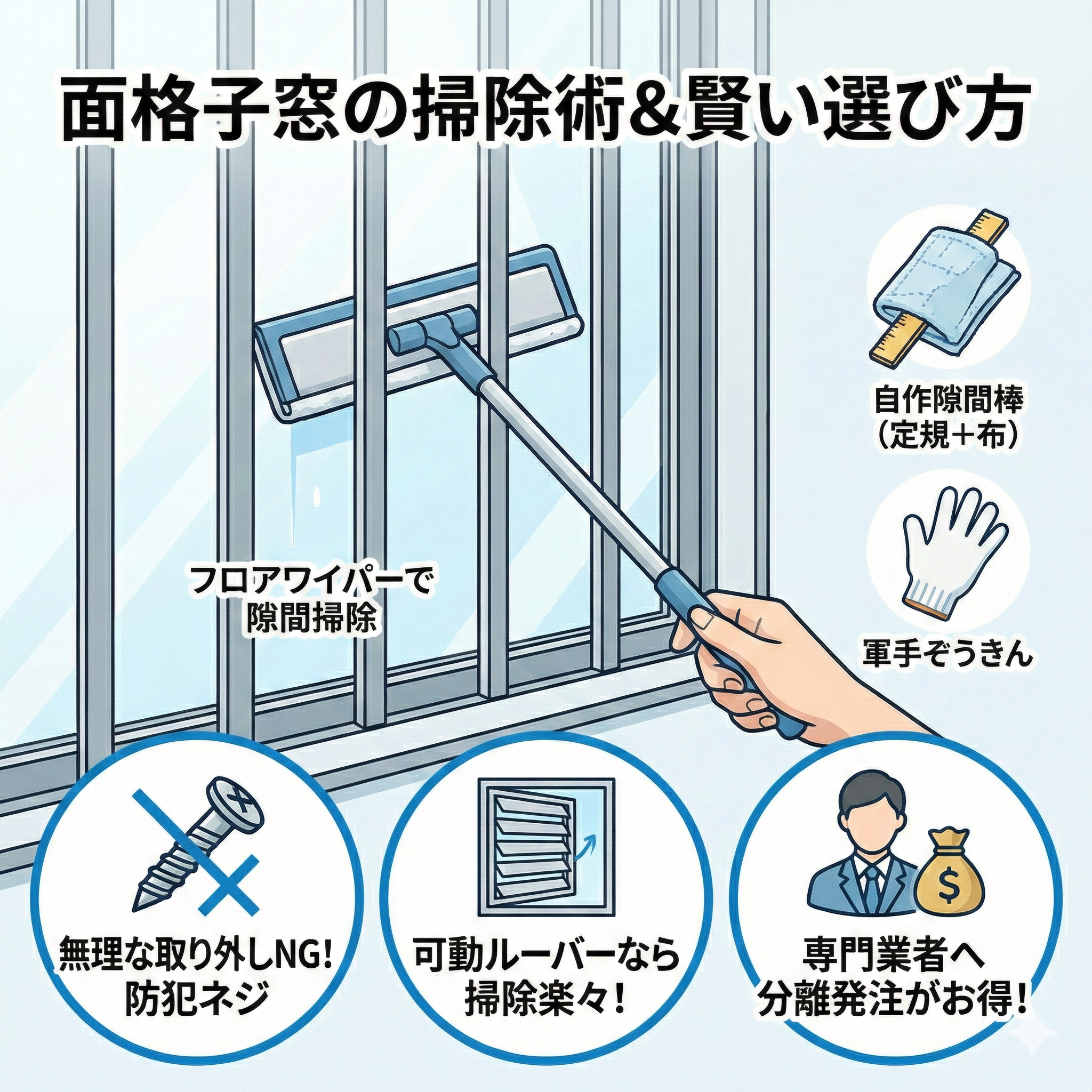 面格子面格子付き窓の掃除方法!手が届かない隙間汚れを落とすコツと注意点