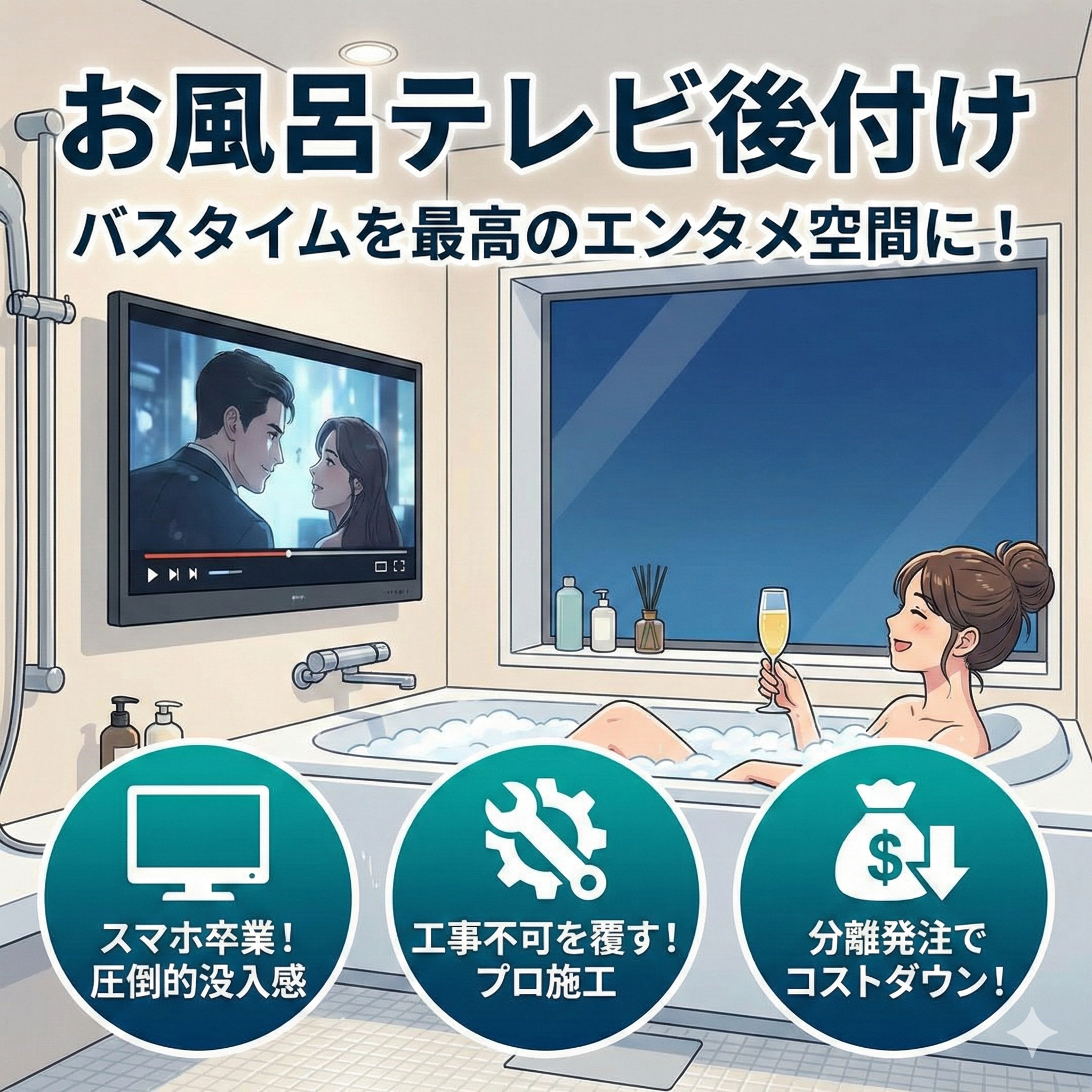 浴室テレビお風呂テレビの後付けで後悔しない!「工事不可」を覆してバスタイムを最高のエンタメ空間にする全手法