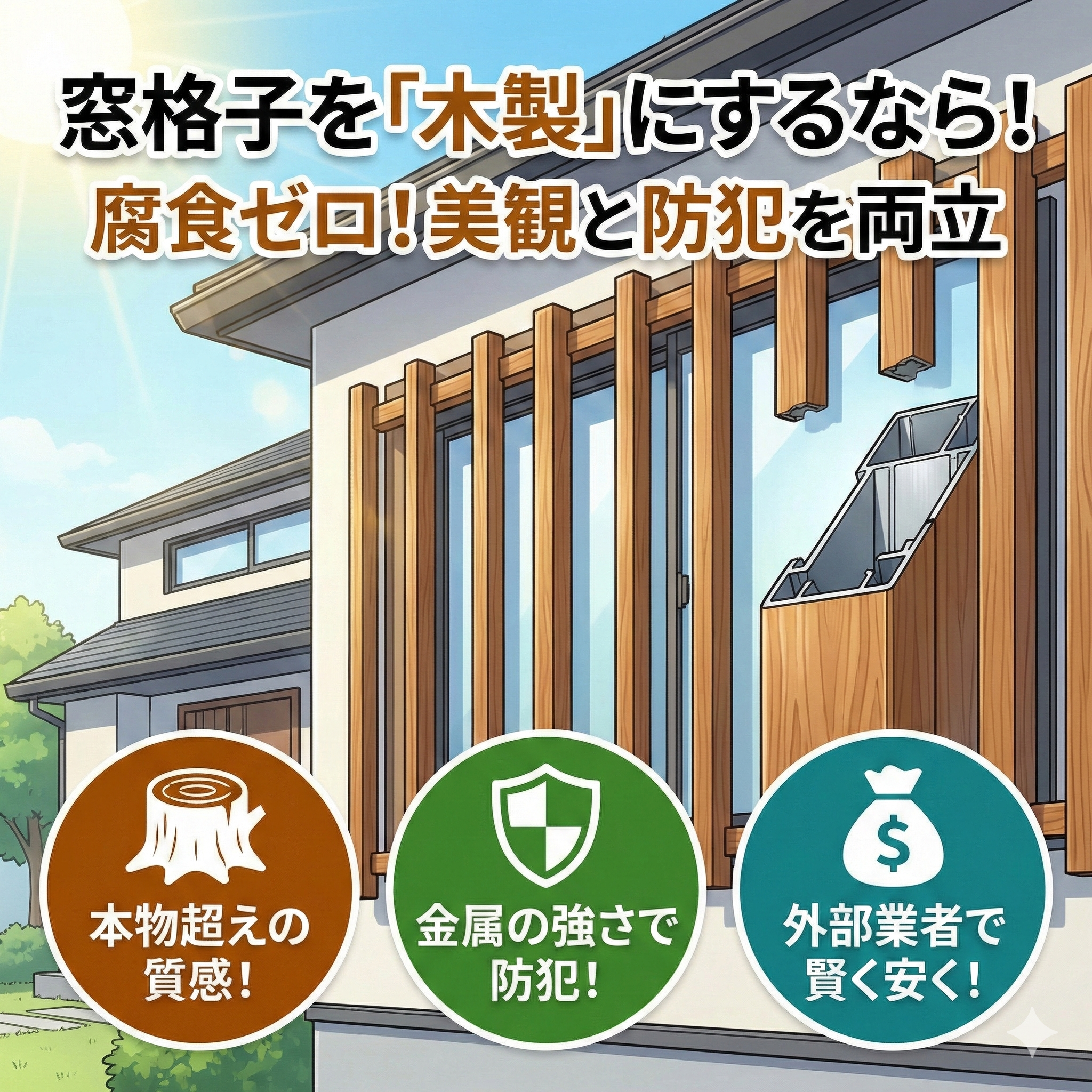 面格子窓格子を「木製」にするなら知っておきたい!腐食リスクをゼロにして外観美と防犯を両立する秘策
