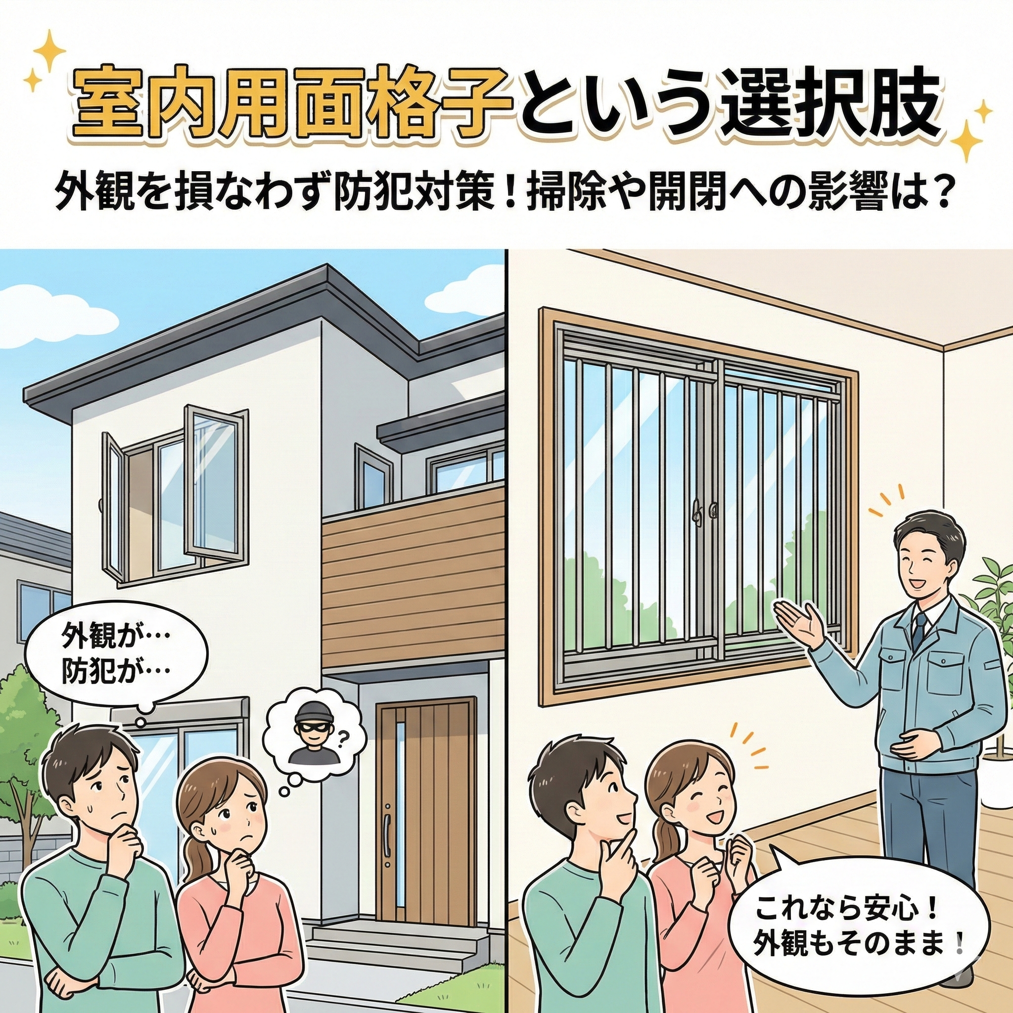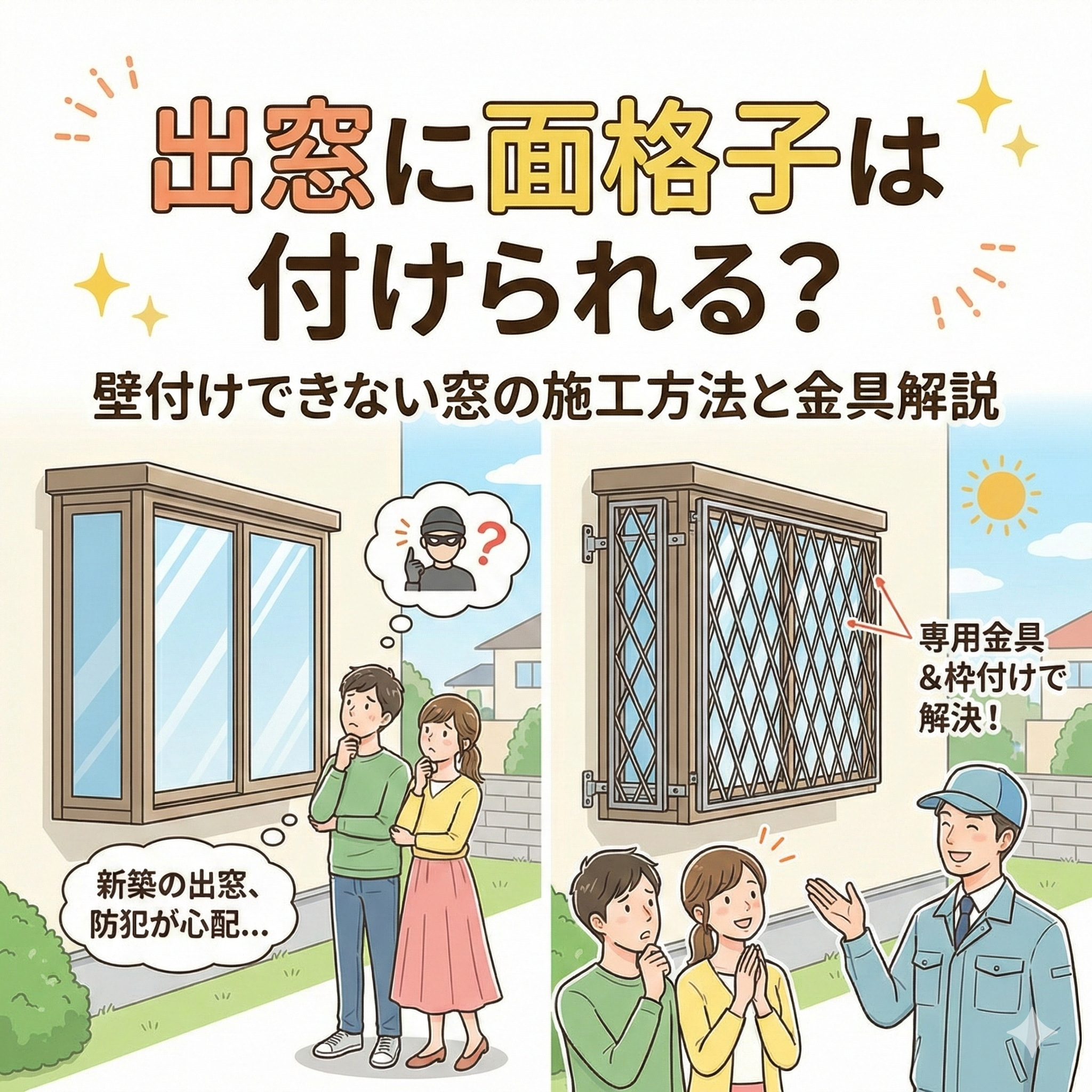 「新築の出窓、おしゃれだけど防犯面が心配……」「壁から飛び出している出窓に、普通の面格子は取り付けられるの?」 新築戸建てを購入された方から、このようなご相談をよくいただきます。出窓は外観のアクセントや室内の広がりを演出 […]