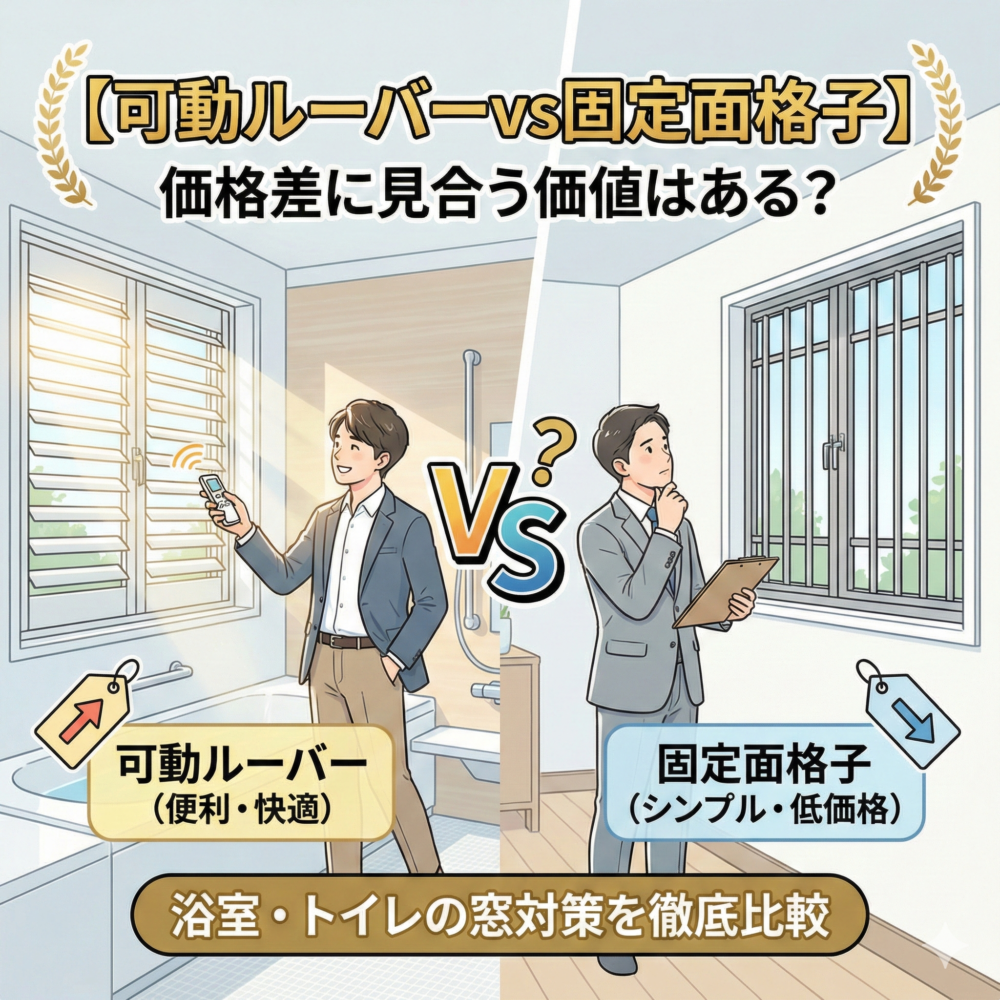 【可動ルーバーvs固定面格子】価格差に見合う価値はある?浴室・トイレの窓対策を徹底比較