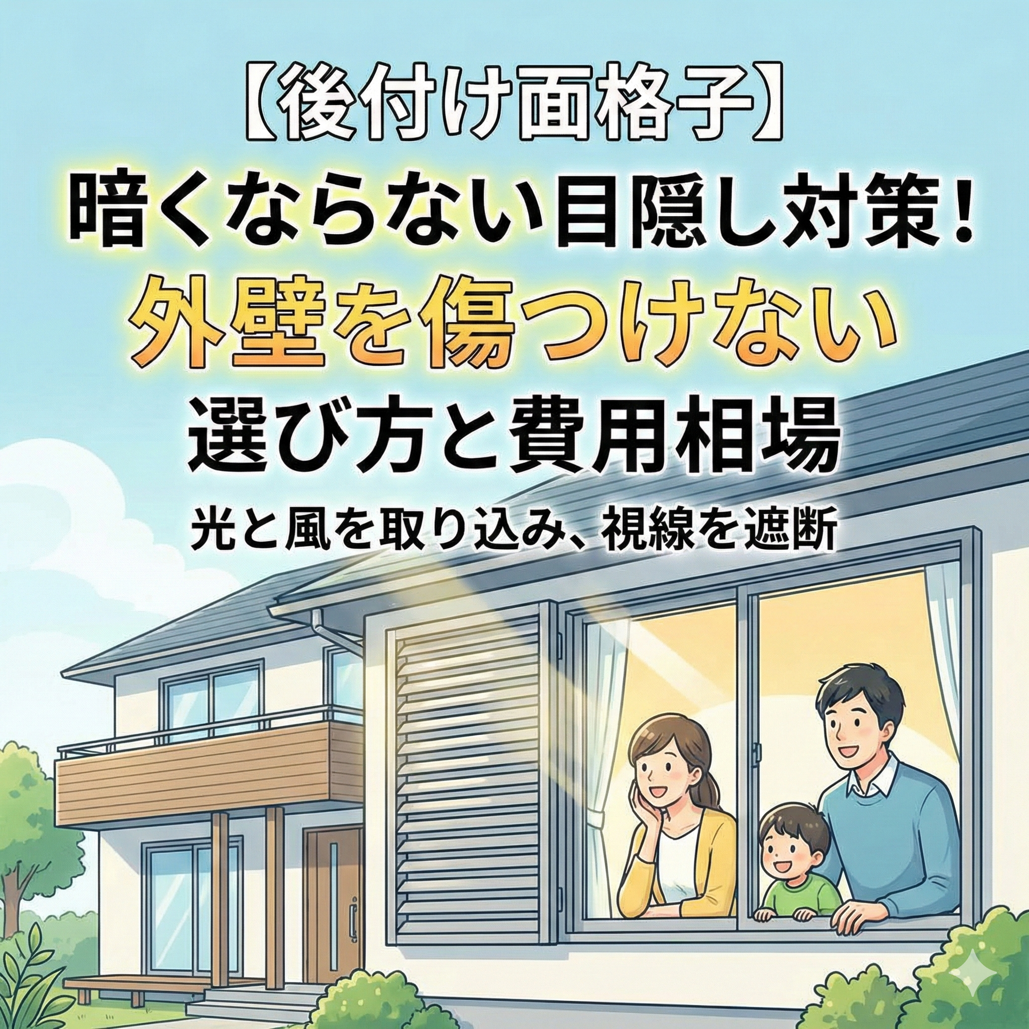 【後付け面格子】暗くならない目隠し対策!外壁を傷つけない選び方と費用相場
