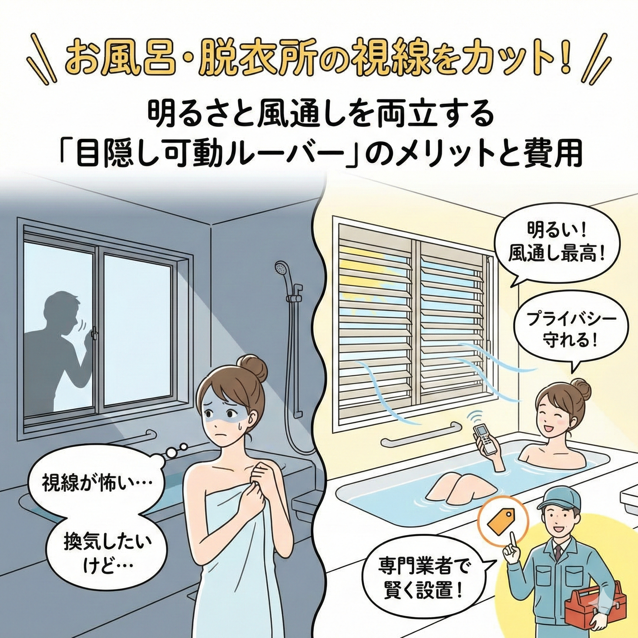 お風呂・脱衣所の視線をカット!明るさと風通しを両立する「目隠し可動ルーバー」のメリットと費用