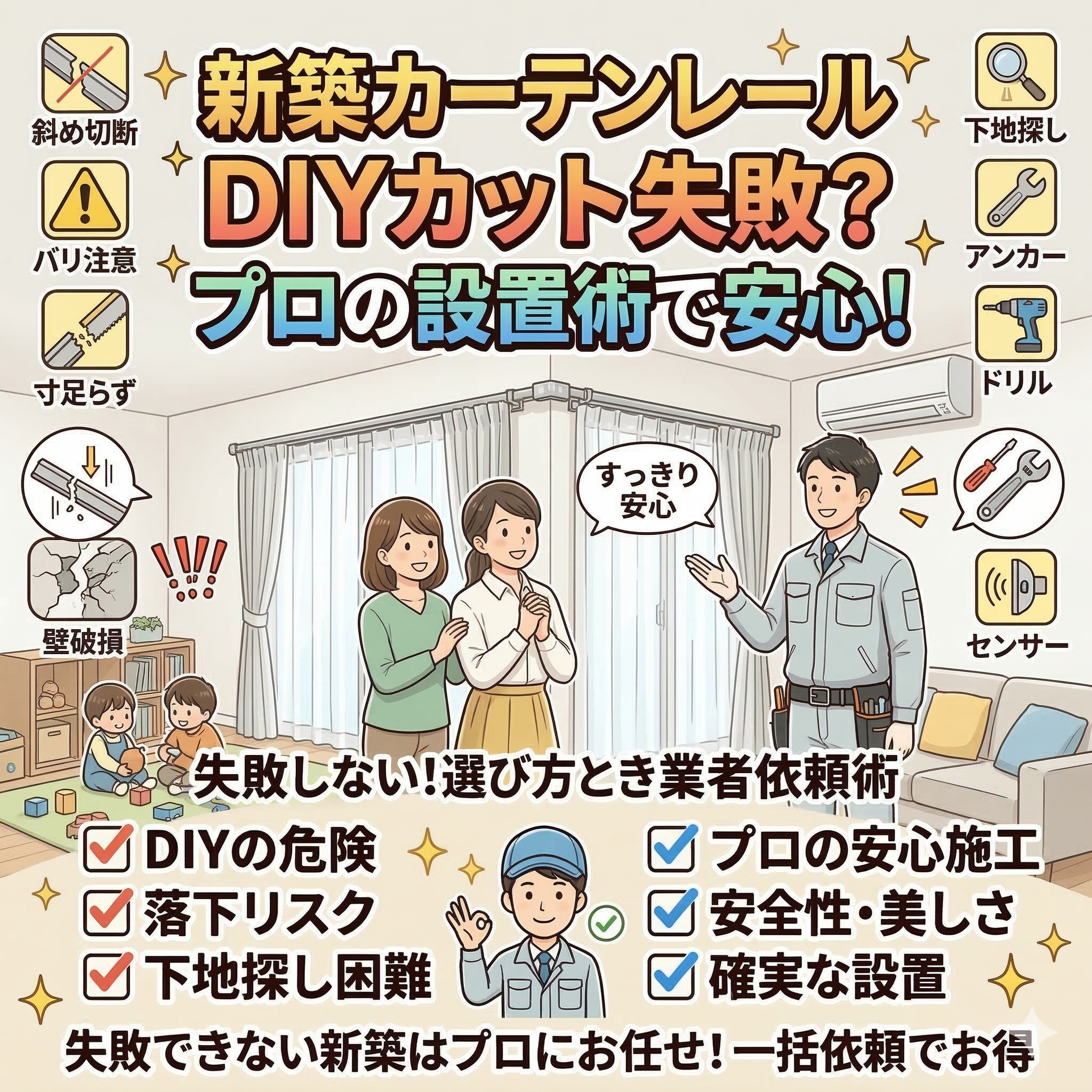 カーテンレール(機能性)カーテンレール(装飾)カーテンレールのカットはDIYで危険?新築で失敗しないための注意点と賢い業者依頼術