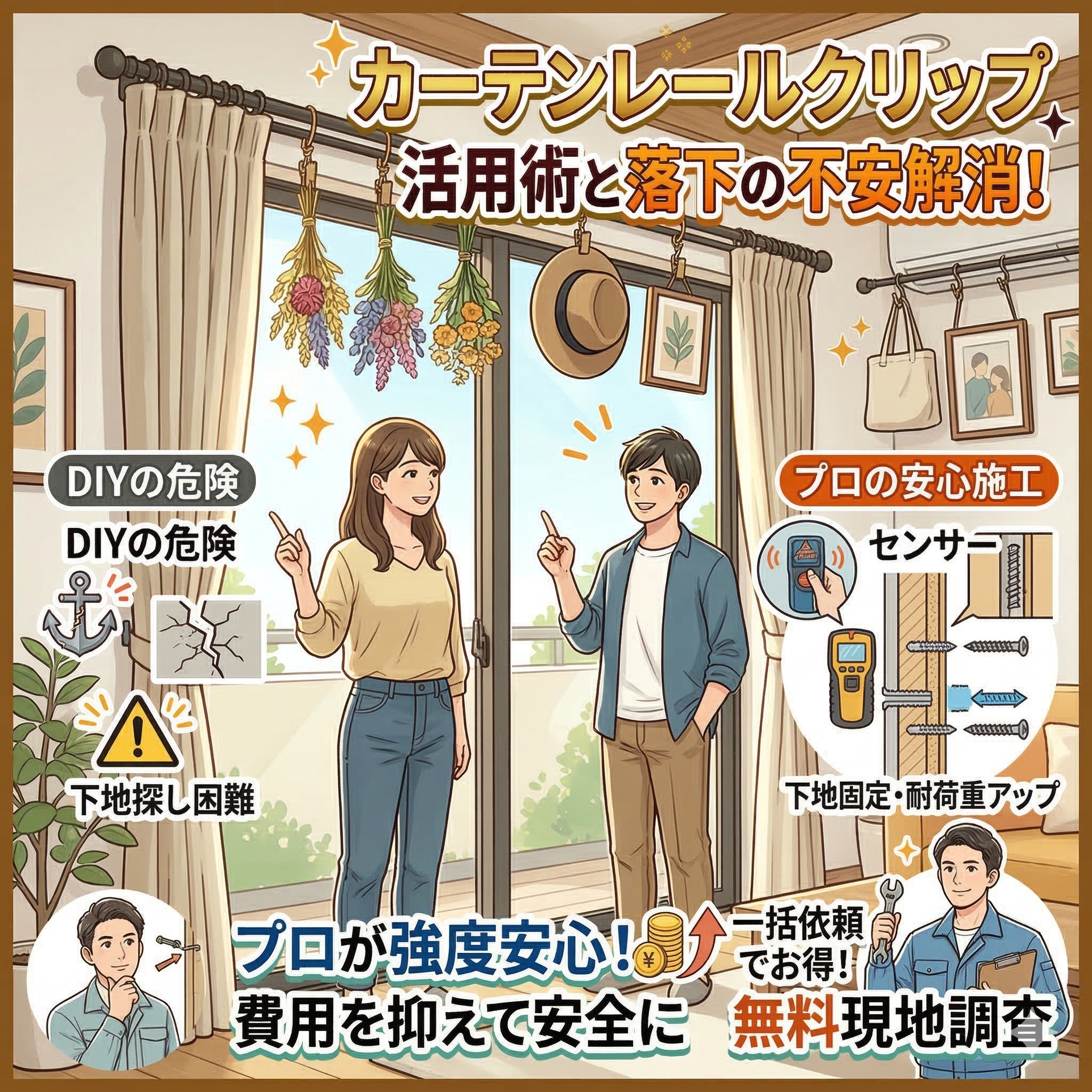 カーテンレール(機能性)カーテンレール(装飾)カーテンレールクリップ活用術と落下の不安解消!DIYのリスクとプロの耐荷重対策