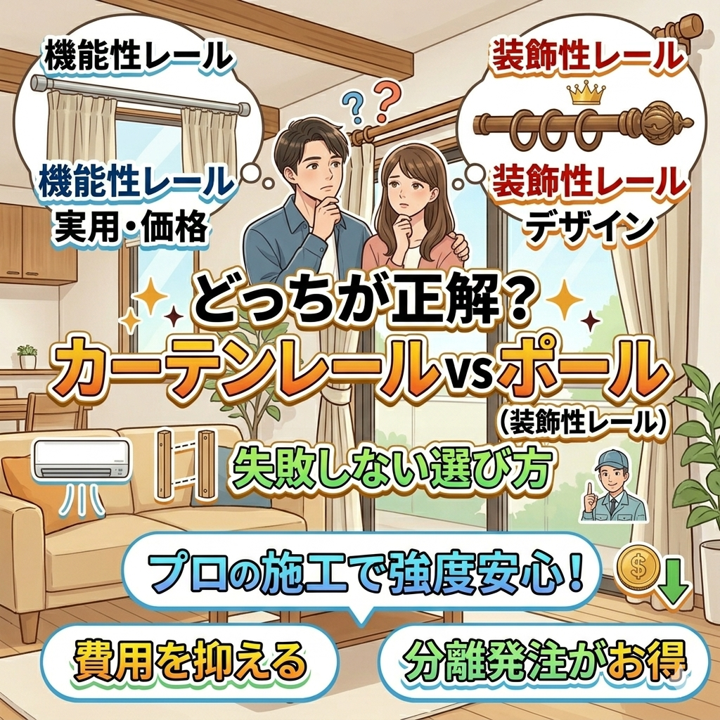 カーテンレール(機能性)カーテンレール(装飾)木製カーテンレールのメリット・デメリット|後付け費用と強度の不安をプロが解消