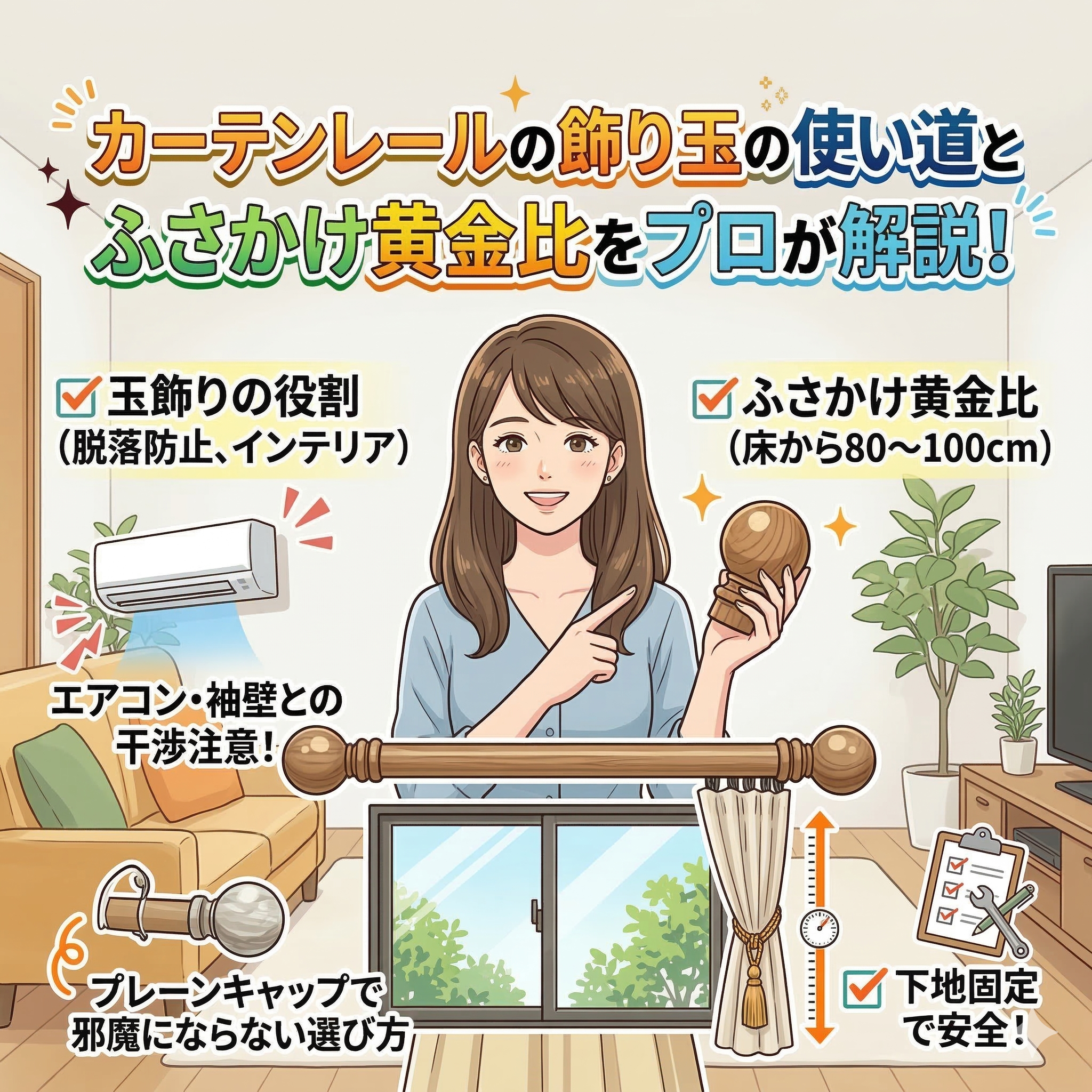 カーテンレール(機能性)カーテンレール(装飾)カーテンレールの「玉」の使い道とは?邪魔にならない選び方とふさかけの黄金比