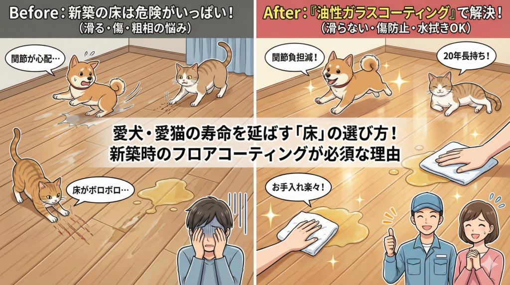 愛犬・愛猫の寿命を延ばす「床」の選び方!新築時のフロアコーティングが必須な理由