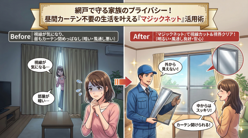 網戸で守る家族のプライバシー!昼間カーテン不要の生活を叶える『マジックネット』活用術