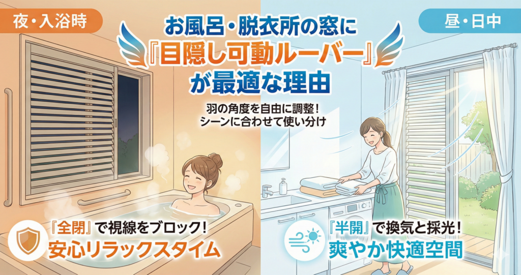お風呂・脱衣所の視線をカット!明るさと風通しを両立する「目隠し可動ルーバー」のメリットと費用