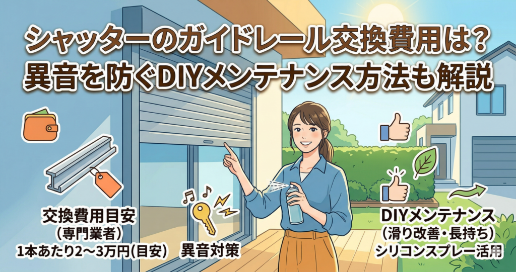 結論からお伝えすると、ハウスメーカーの保証対象外となる自損事故の場合、外部の専門業者にガイドレールの交換を依頼すれば、1本あたり2〜3万円程度で修理が可能です。また、軽度な異音であれば、市販のシリコンスプレーを使った簡単なDIYメンテナンスで改善できるケースも多くあります。
