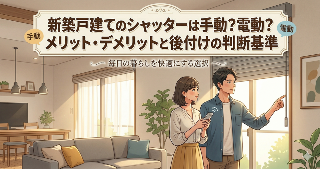 新築戸建てを購入する際、シャッターが標準仕様として付いている、あるいはこれから設置を検討している方は多いでしょう。しかし、「手動のままで十分か」「費用をかけてでも電動にするべきか」は非常に悩ましいポイントです。この記事では、手動・電動それぞれのメリット・デメリットを整理し、後悔しないための判断基準を解説します。