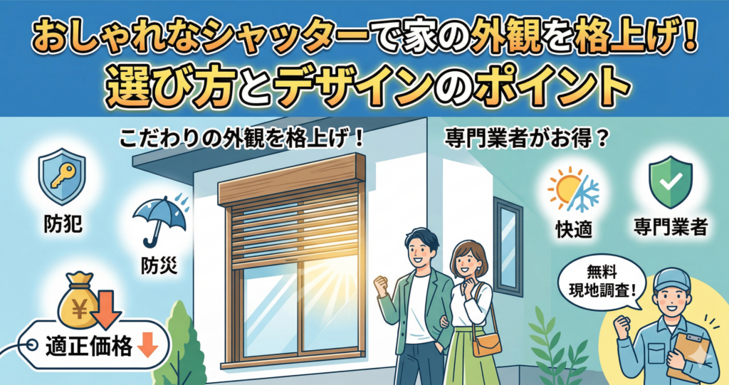 新築住宅の外観を損なわずにシャッターを設置するには、ハウスメーカーの標準仕様に縛られず、オプション工事の専門業者へ分離発注するのが最も賢い選択です。サッシメーカーの豊富なラインナップから、外観にベストマッチするデザインを適正価格で選ぶことができます。