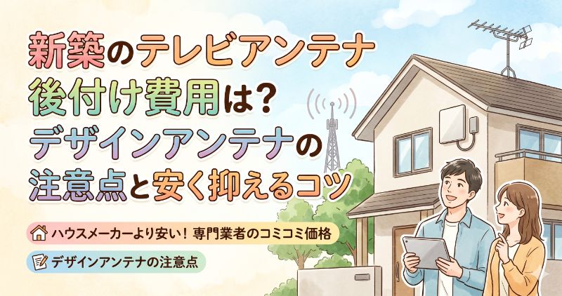 新築戸建てにテレビアンテナを後付けする際、ハウスメーカーの見積もりが高額でお悩みの方は、オプション工事専門業者への「分離発注」がおすすめです。専門業者なら、外観に馴染むデザインアンテナや必須となるブースターを含めても、費用を大幅に抑えることが可能です。