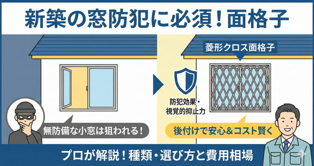 昨今の新築住宅、特にパワービルダー系の建売住宅では、コストダウンのために面格子が標準装備されていないケースが増えています。しかし、防犯の観点からは設置を強く推奨します。