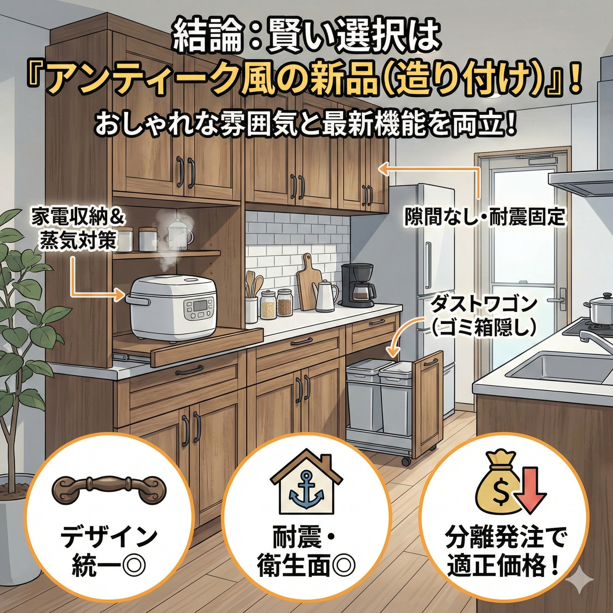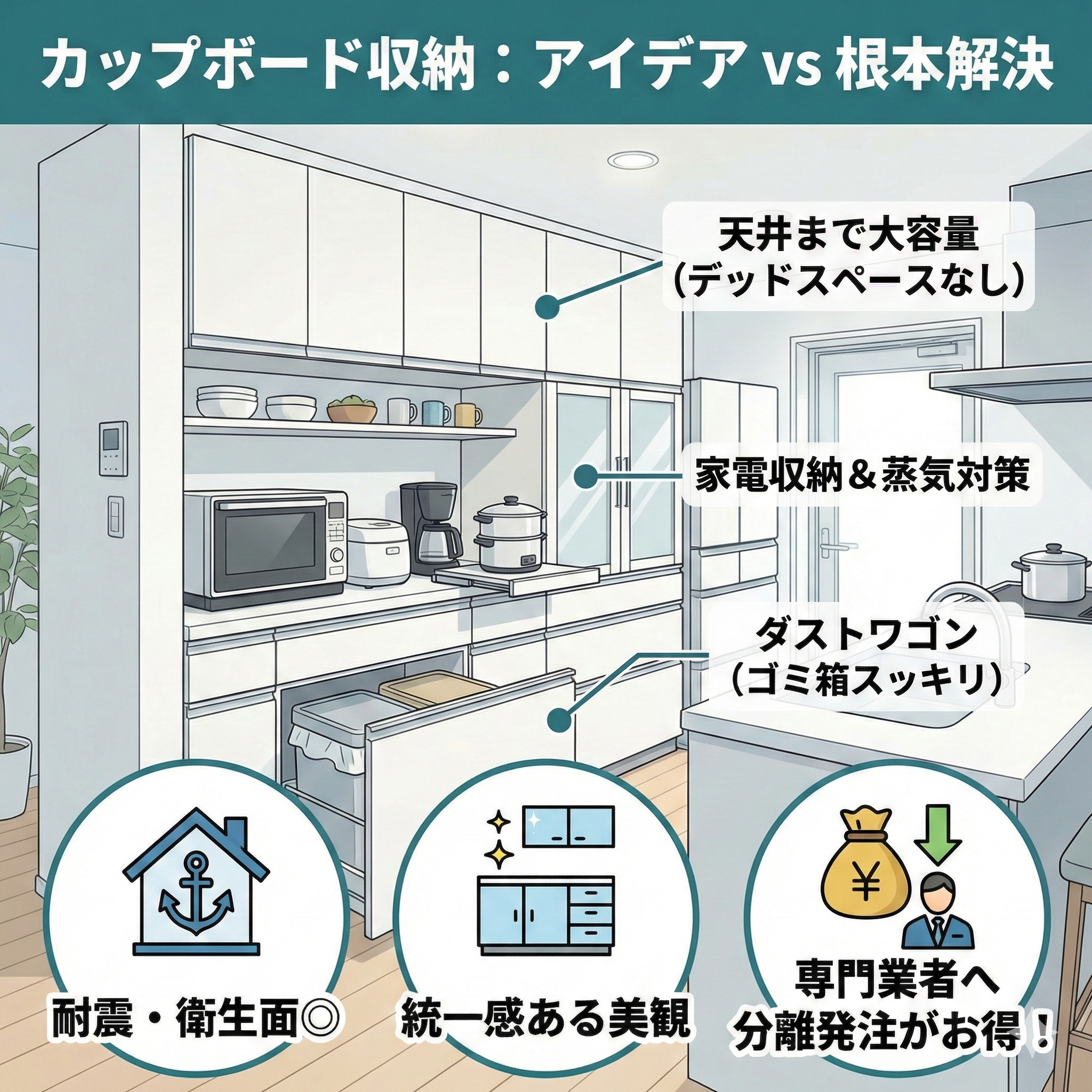 「建売住宅を買ったけれど、キッチンに食器棚がついていない」「ハウスメーカーのオプション見積もりが高すぎて諦めた」 新築戸建てやマンション購入後、このような悩みを抱える方は少なくありません。しかし、カップボード(食器棚)は […]