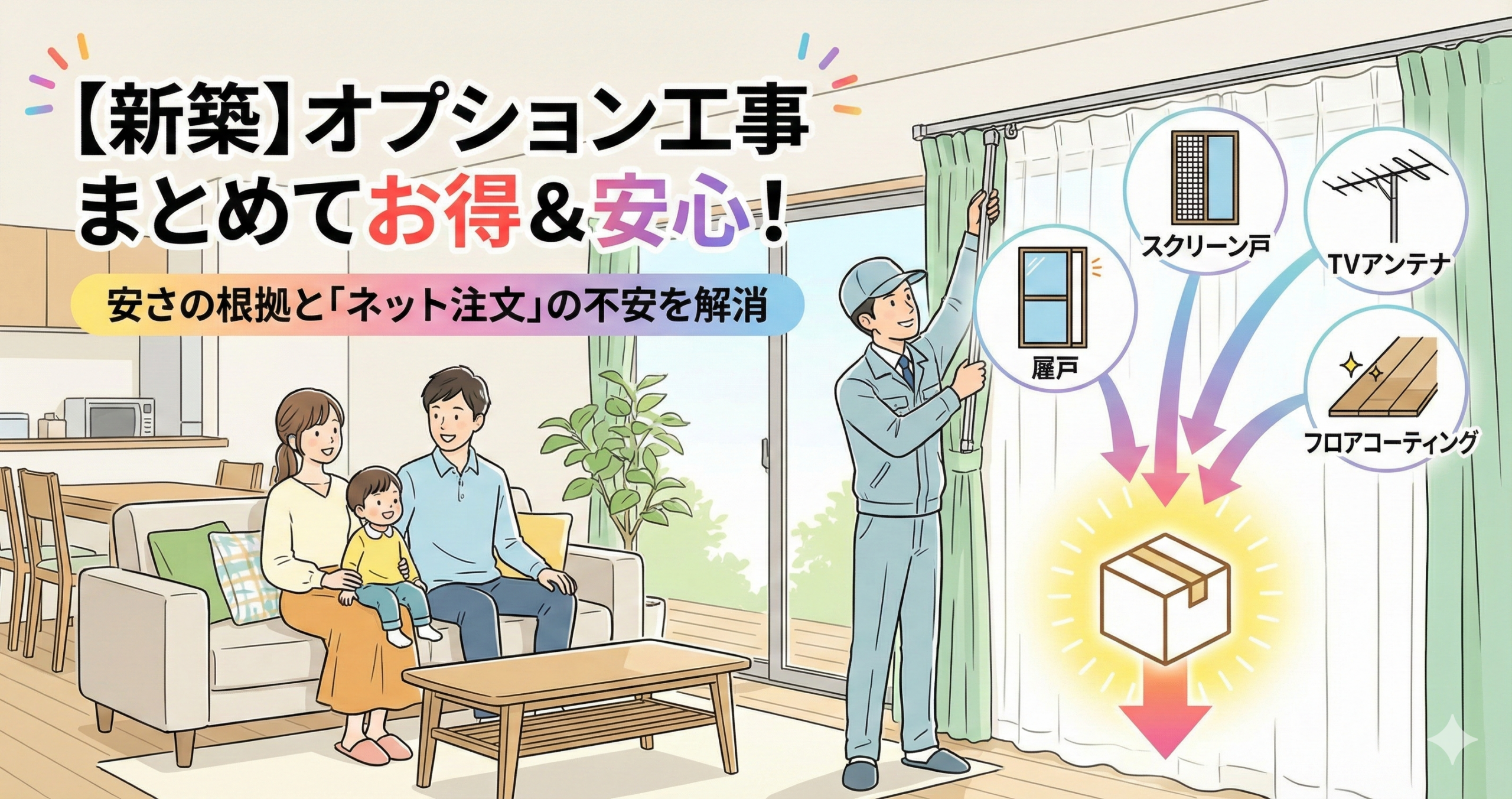 「せっかくの新築、オプション工事もこだわりたいけれど、見積もりが高すぎる……」「ネットで探した専門業者に頼めば安いと聞くけれど、顔が見えない相手に大切な新家を任せて大丈夫だろうか?」 新築戸建てを購入された多くの方が、引 […]